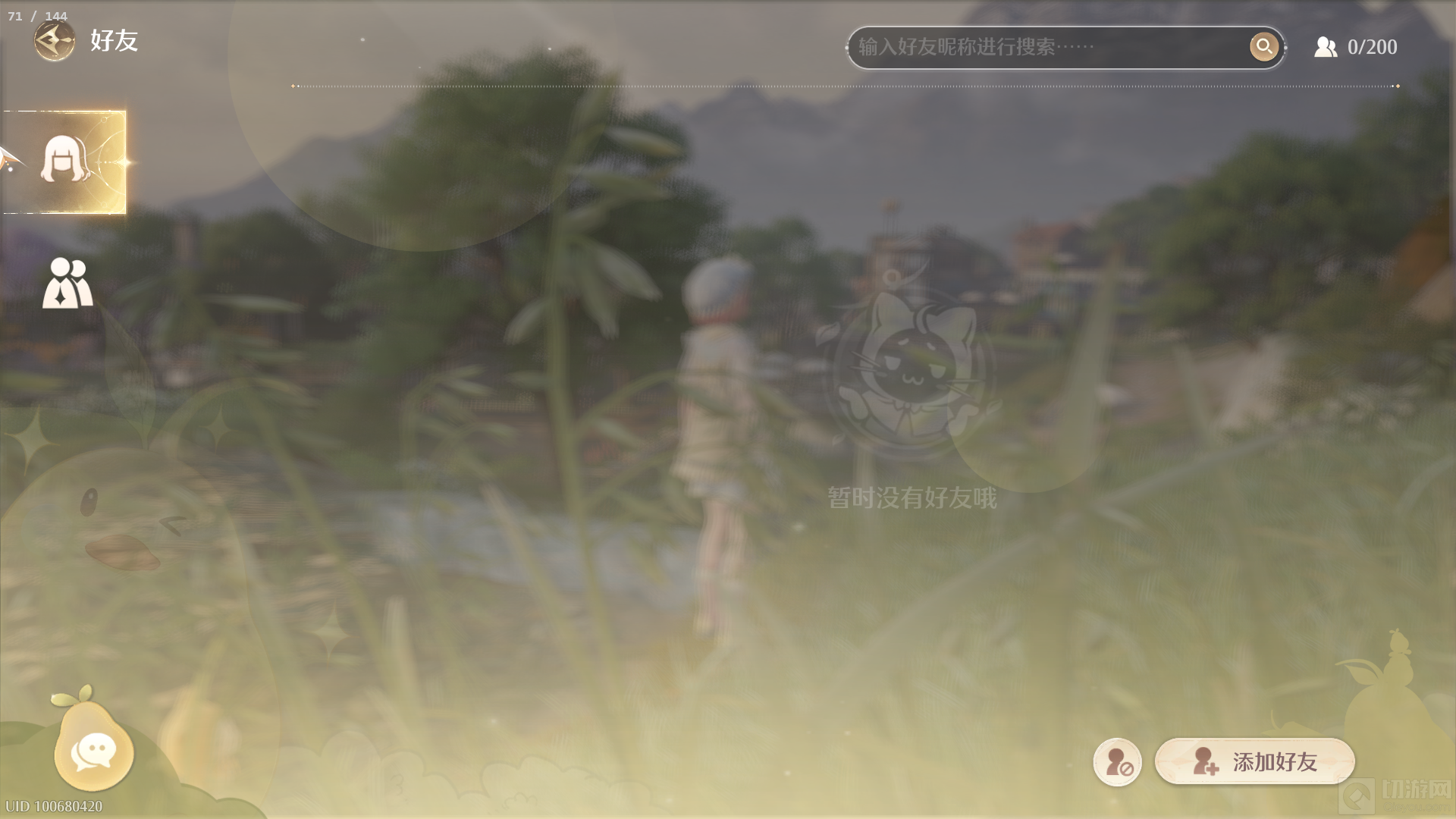 搜索好友:在好友系统界面中,你可以通过搜索功能输入你想要添加的好友的UID就可以啦!或者通过伙伴口令进行添加哦!