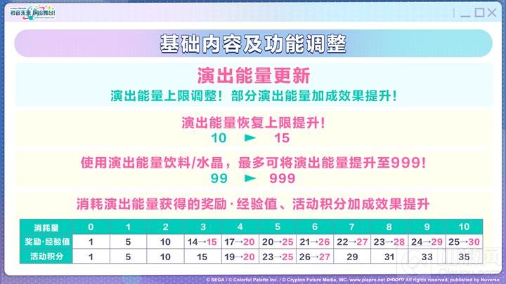 - 演出能量最大值由99扩展至999,方便玩家在活动期间高效利用能量。
