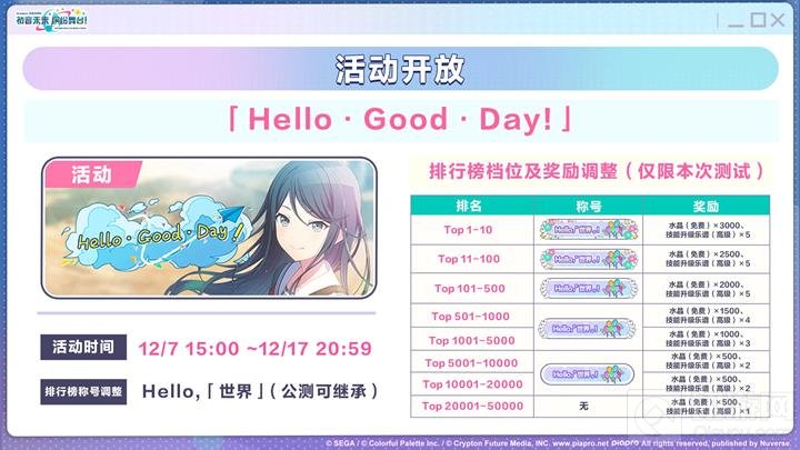 - 活动称号“Hello,「世界」”将在公测时继承至玩家账号(需使用相同账号登录)。