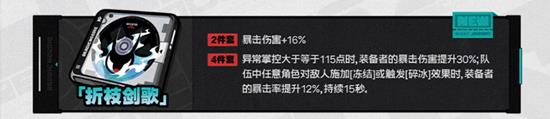 异常掌控大于等于115点时,装备者的暴击伤害提升30%;队伍中任意角色对敌人施加[冻结]或触发[碎冰]效果时,装备者的暴击率提升12%,持续15秒。