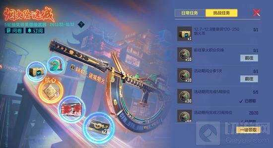 首先,关于本次烟火绘谜城活动几个关键时间节点,各位玩家一定要记清楚:一、活动持续时间为11月22日至1月12日,接近两个月的时间,各位玩家完全无需担心拿不到全部奖励的问题;二、12月7日至12月8日登录游戏即可领取烟火币宝箱,有几率开出120~250枚烟火币,需要注意的是,仅此两天可以领取,千万不要错过;三、最后一轮抽奖奖池将于12月7日开放,届时各位玩家可以集齐最后的AK47-谜城烟火觉醒石获取AK47-谜城烟火。