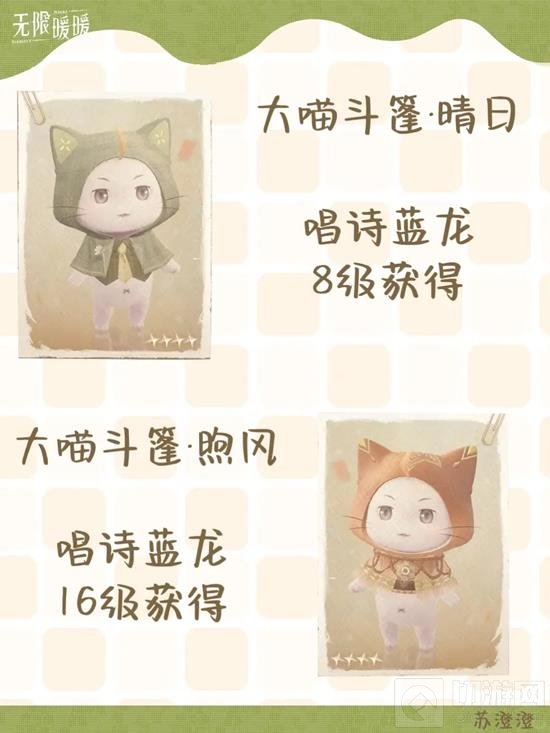 设计图纸奖励:当玩家的唱诗蓝龙等级达到8级时,将解锁大喵斗篷晴日的设计图纸。
