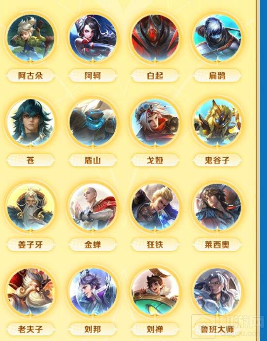 阿轲、盾山、全蝉、刘邦、哪吒、苏烈