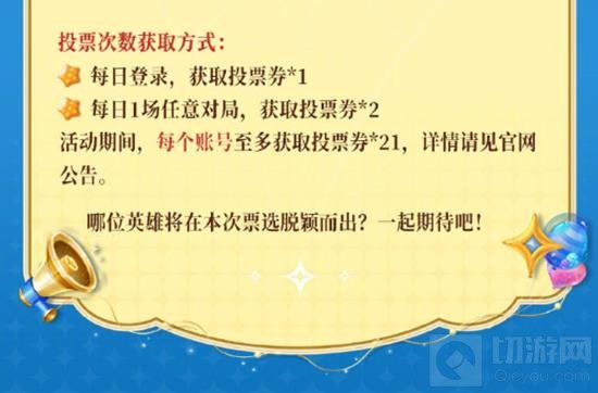 每日完成1场任意对局,获取投票券*2。