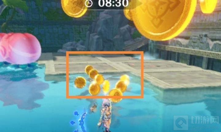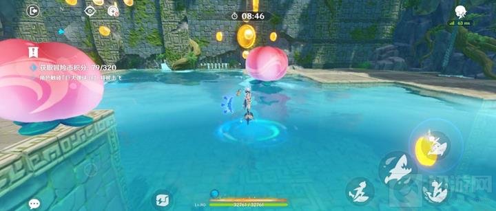 在这个关卡中,使用玛拉妮的元素战技进行游泳并收集积分币。