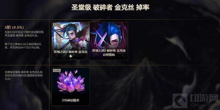 圣堂级破碎者金克丝礼包:该礼包为本次活动的唯一S阶道具。