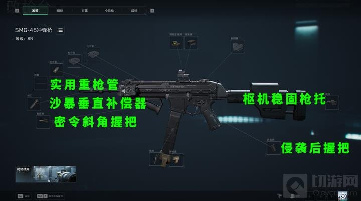 SMG-45的配装相对简单,核心配件为40发扩容弹匣。其他配件可根据个人喜好选择。我的建议如下: