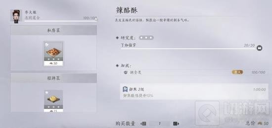 关于辣酪酥的购买地点,玩家可以在伏马庄棋手“祁晟”旁的小吃摊找到NPC李大娘,与她交谈后可进入购买页面。辣酪酥的价格为15枚短陌钱,食用后即可获得上述buff加成。