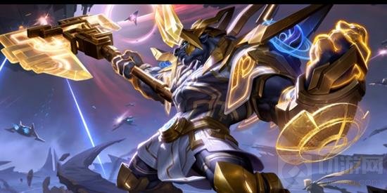 三技能:汇聚星空能量,短暂蓄力后挥出惊天一击,金色能量光线冲天而起,星际战场的残垣逐一显现。