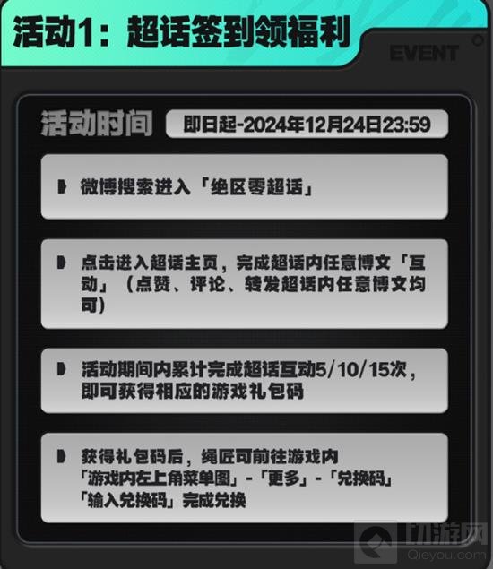 以上就是绝区零1.4版本更新最新兑换码推荐绝区零1.4兑换码兑换的全部内容了,更多游戏内容,资讯,攻略敬请关注切游网,您的支持是我们努力的动力!