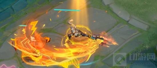 一技能:火龙附于武器挥砍,恢复效果采用了聚光灯的加血设计,增强了舞台感,让狂铁在战斗中如同在舞台上一样耀眼。