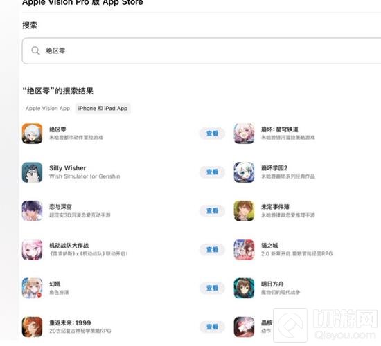 由于Apple Vision Pro版的App Store暂未直接上架《绝区零》,玩家可以通过“iPhone和iPad App”专区查找并下载游戏。