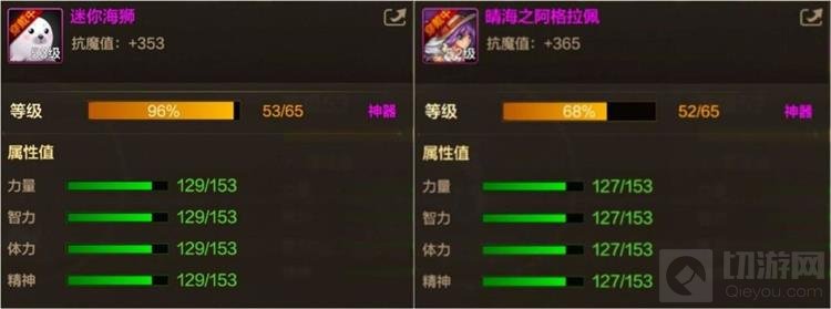 宠物装备方面,选择稀有宠物装备,洗炼词条更容易,与神器宠物装备的抗魔值差距不大,且容易获取。