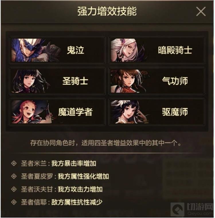新版本中,辅助角色的地位得以保持,并增加了驱魔师。队伍中存在协同角色时,全体队员将获得协同角色支援buff增益,增益效果包括增加双暴、全属性强化、双攻以及减少敌人全属性抗性。