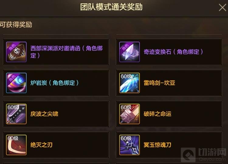 除了核心材料,团本还会产出西部深渊邀请函、奇迹变换石和60级史诗装备。