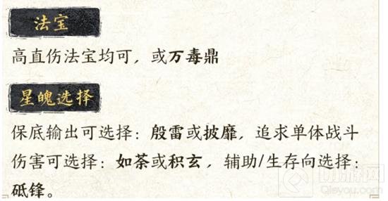 可以选择具有高直接伤害的法宝,这类法宝通常能提供较强的输出能力。