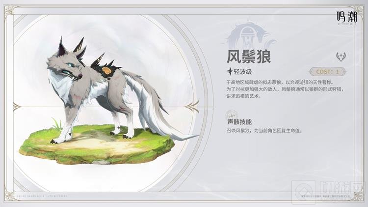 使用声骸技能,召唤风鬃狼,为附近队伍的角色回复5.00%生命上限的生命值,最多可治疗3次。