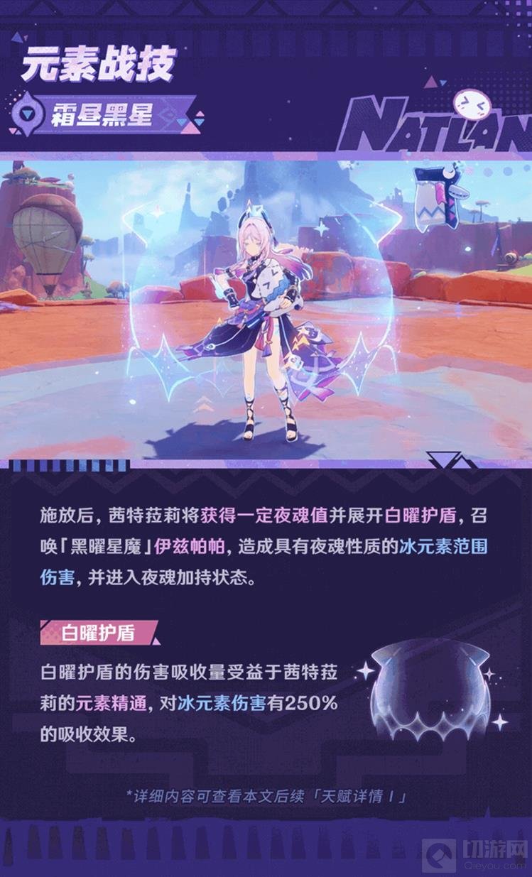 护盾应用:白曜护盾对冰元素伤害有显著的吸收效果,这使得茜特菈莉在对抗冰属性敌人时特别有用。适时使用元素战技保护自己或队友免受致命伤害。