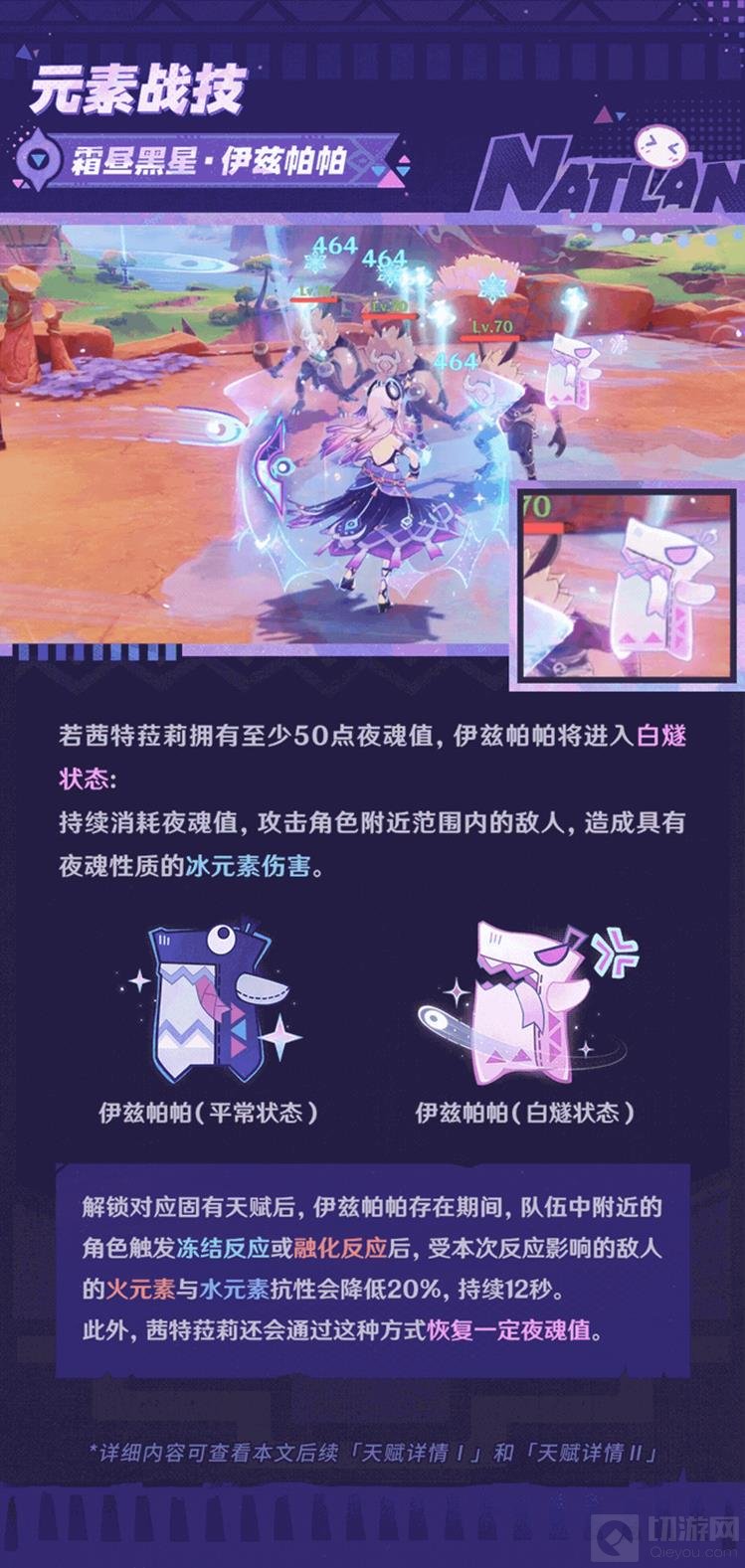 使用元素战技时考虑队伍配置,因为伊兹帕帕存在期间触发冻结或融化反应可以降低敌人的火元素和水元素抗性,同时恢复夜魂值。