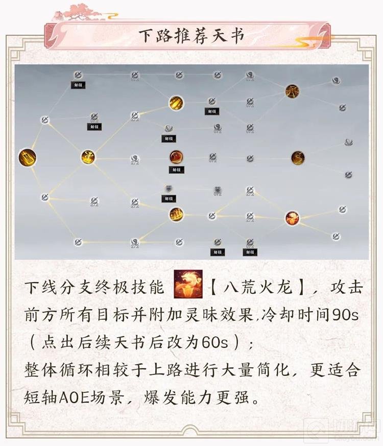 - 攻击前方所有目标并附加灵昧效果,冷却时间90s(点出后续天书后改为60s)。