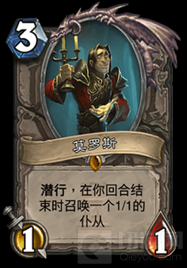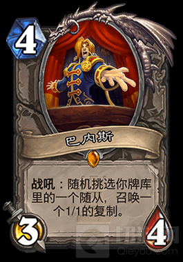 新橙卡巴内斯的战吼:随机挑选你牌库里的一个随从,召唤一个1/1的复制,也算是对当年《魔兽世界》随机报幕选定歌剧院BOSS的一个致敬吧。