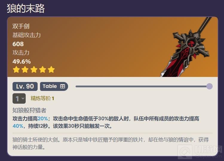 狼的末路是一把常驻祈愿池中的五星双手剑,它提供的大量攻击力加成对玛薇卡而言非常有用。然而,这把武器的部分攻击力提升效果依赖于命中低血量的目标,这意味着它的覆盖率和稳定性相对较差。尽管如此,如果你正在构建一个专注于击败BOSS或精英怪物的队伍,那么狼的末路仍然是个不错的选择。为了充分发挥这把武器的优势,建议将玛薇卡放置在一个能够持续造成高额单体伤害的位置上,并确保敌人生命值足够低以触发狼的末路的特效。