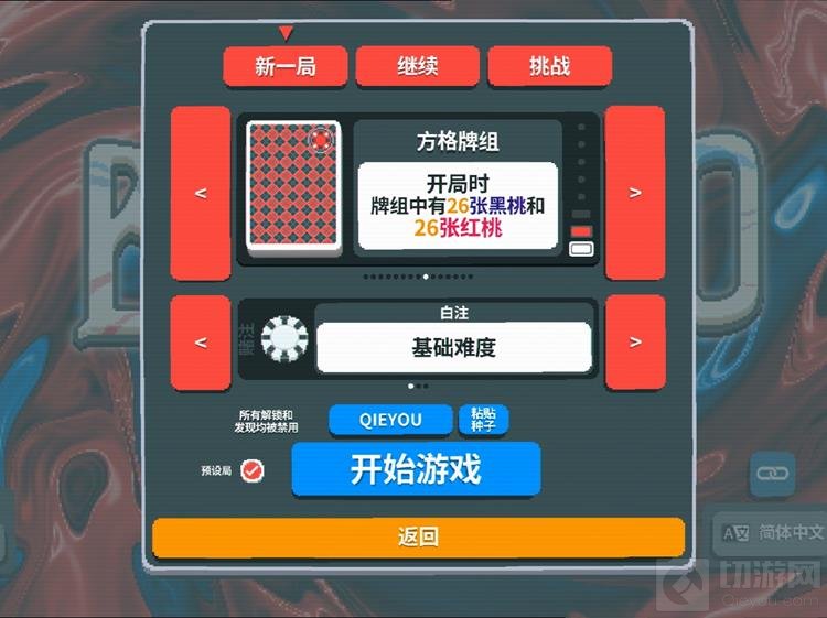 在游戏开始时,进入设置界面输入种子 QIEYOU,然后随意选择一个卡组开局即可。推荐选择适合自己玩法风格的卡组,以保证游戏后续操作更加顺畅。