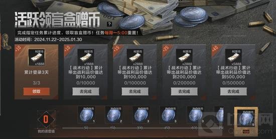 盲盒赠币活动每期开启时间为2个月,期间完成每周活跃任务即可领取固定数量的【盲盒赠币】,活跃任务每周一5:00刷新,两个月最多可获得30个【盲盒赠币】!