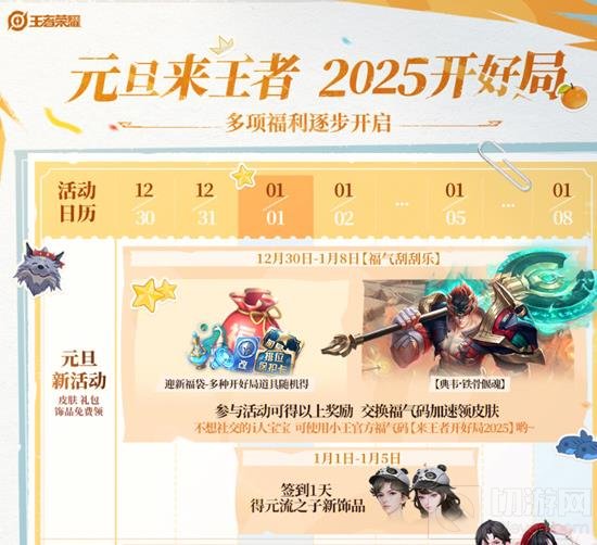 随着2025年的钟声即将敲响,王者峡谷也迎来了一系列元旦假期的特别福利活动,为玩家们带来新年的好运和欢乐。以下是王者运营团队为大家准备的元旦活动概览: