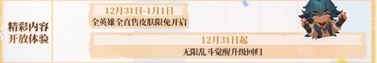 收好这份活动日历,不错过任何精彩体验内容及皮肤上新的时间。元旦假期,来峡谷开好局,领取福利,享受游戏带来的乐趣。