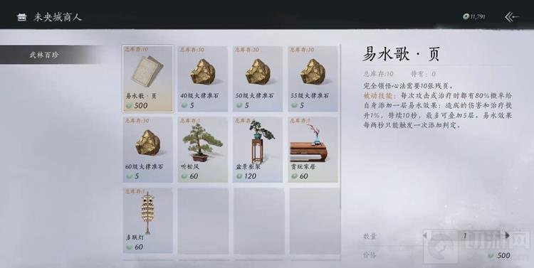 唐宝这里出售心法易水歌的残页。攒够十个易水歌的残页,就可以学得万金油心法“易水歌”。奶妈和输出都可以用这个心法。
