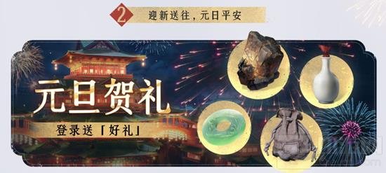 四气新元旦,万寿初今朝。活动期间,登录游戏即可从「邮件」中领取【长鸣玉】*100、【自选通宝】*20、【振玉】*10、【金疮药】*2。