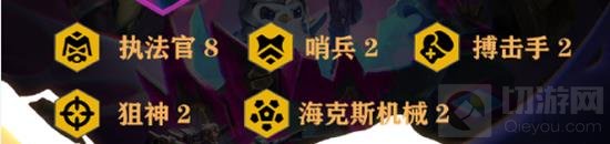 开局可以拿到执法官之徽/冕,配合一费执法官开出4执法官羁绊。