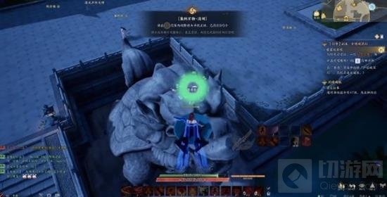 4、看到会喷水的神兽雕像,飞到头上去,找到灵体。