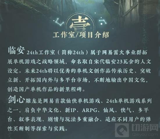 《剑心雕龙》是网易首款仙侠题材的单机游戏,由网易雷火事业群旗下的临安24th工作室开发。这款游戏融合了中华文化、新IP、ARPG元素、仙风侠气,并计划支持多平台发布。游戏采用叙事表现、剧情与玩法多重融合的设计,适应不同用户的弹性买断制,是网易在单机游戏领域的一次重要探索与实践。