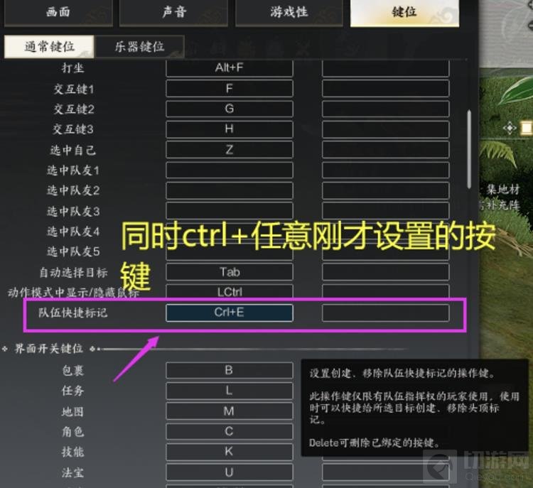 将“通常键位”的“队伍快捷标记”改为Ctrl+任意按键。