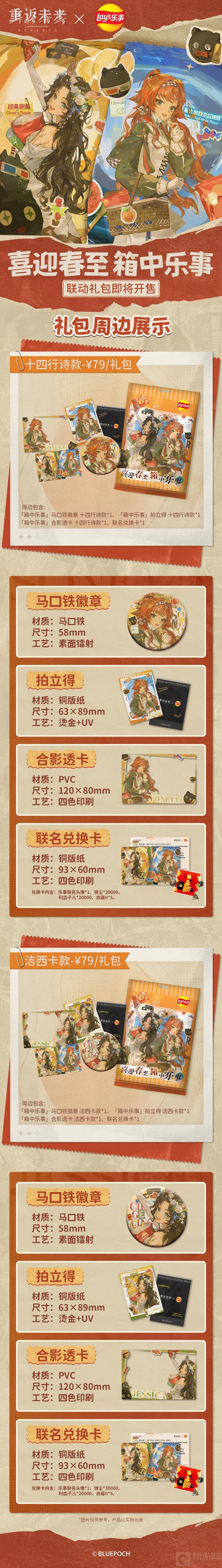 联名活动已经开启,感兴趣的各位可以去他们的天猫店去购买了。以上就是关于重返未来1999和乐事薯片联动的相关情报,如果这篇对你有帮助,还请点个收藏关注一下切游网,各位读者的支持就是我们持续更新的最大动力。