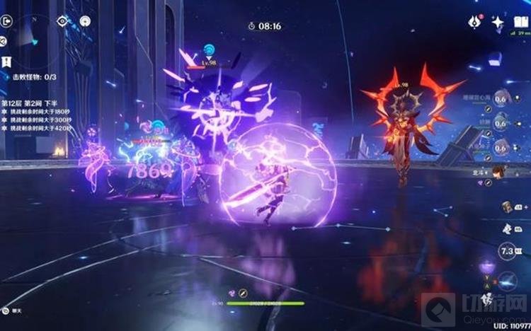 队伍配置建议:火系角色(如迪卢克或可莉)+ 雷系角色(如欧洛伦或恰斯卡)+ 辅助角色(如钟离或诺艾尔)。火系角色负责破除冰使徒的盾,雷系角色则专注于草使徒,辅助角色提供必要的支持。