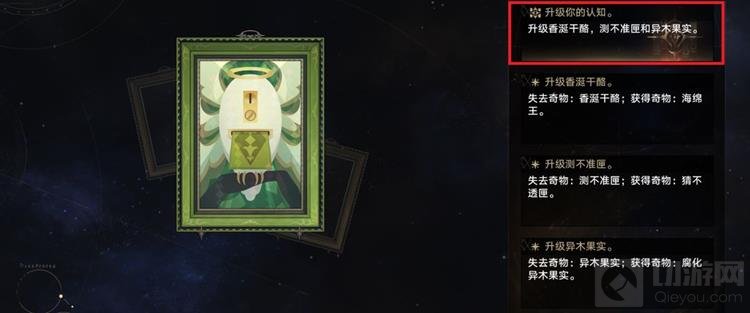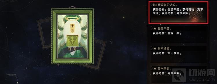 接下来是猜不透匣、腐化异木果实和海绵王这三个奇物。它们需要通过特定的事件《星际和平机械分部商城》来解锁。当玩家的认知在推荐区域时,有概率刷出命途选项,这将大大方便奇物的获取。使用骰子多复制一些事件区域,当刷出《星际和平机械分部商城·其一》时,一次性获得这三个奇物。之后只要携带这三个奇物,就有概率刷出《星际和平机械分部商城·其二》,此时选择升级三个奇物,就能一次性解锁它们。