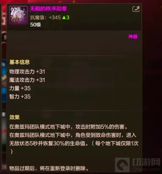 总之,至尊团本勋章的出现为DNF手游的战斗带来了新的变化。玩家需要在了解其特性的基础上,结合自身的角色特点和战斗需求,合理利用无敌技能和属强徽章的优势,才能在团本战斗中取得更好的成绩。如果这篇攻略对你有帮助,还请点个收藏关注一下切游网,各位读者的支持就是我们持续更新的最大动力。