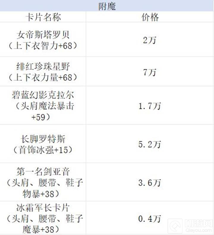其次,附魔也是提升角色实力的重要途径之一。对于走冰强路线的魔法玩家来说,目前的顶级附魔价格非常亲民,整套下来仅需22万泰拉,性价比极高。需要注意的是,由于奥兹玛与困难罗特斯共享次数,导致罗特斯卡片产出减少,价格从3万涨到了5.2万,因此走冰强路线的玩家要抓紧时间入手,以免错过最佳时机,价格持续上涨。
