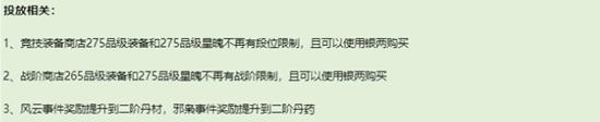 竞技装备商店:275品级装备和275品级星不再有段位限制,且可以使用银两购买。这一调整降低了玩家获取高品质装备的门槛,使更多玩家能够通过竞技场获得强大的装备,提升了竞技场的吸引力和玩家的参与度.