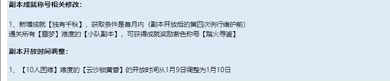 【10人困难】难度的【云沙锁黄昏】:开放时间从原定的1月9日调整为1月10日。这一调整可能是为了给玩家更多的时间来准备和调整策略,以便更好地应对该副本的挑战,确保玩家能够获得更好的游戏体验.