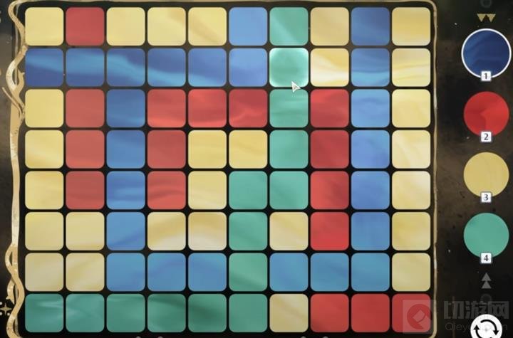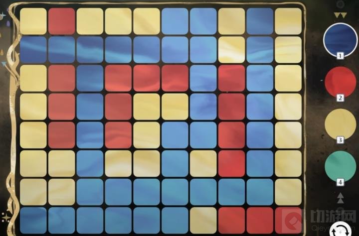 鸣潮的世界挑战中有名为溢彩画的解谜,要求玩家在特定步数限制之内,将正片区域染成同一种颜色(任务通常是让染成黄色)。但是很多玩家不太清楚这个怎么玩啊,现在切游小编来给大家讲一下鸣潮溢彩画这个是什么原理,希望可以给大家授之以渔。