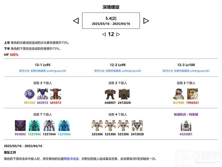 5.4版本的深渊设计明显增加了挑战性,尤其是怪物分波次登场和分散刷新的机制,对近战角色提出了更高的要求。玩家需要根据Buff效果和怪物机制,合理搭配角色和队伍,才能高效通关。希望这篇攻略能够帮助大家更好地应对5.4版本的深渊挑战!如果这篇攻略对你有帮助,还请点个收藏关注一下切游网,各位读者的支持就是我们持续更新的最大动力。