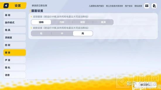 (3)尝试在设置界面调低画质设置、关闭高帧率模式。