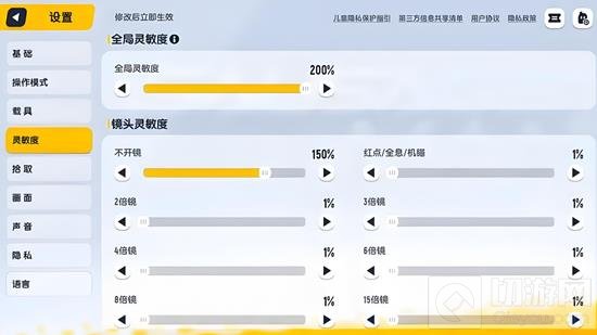 全局灵敏度:建议将全局灵敏度设置为200%,这样可以更方便地调整其他各项灵敏度。