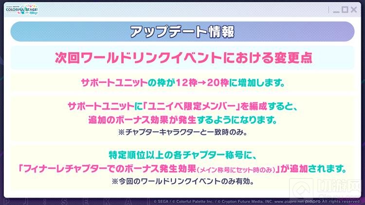 以上就是关于世界计划pjsk日服的二期World Link活动相关情报了。如果这篇攻略对你有帮助,还请点个收藏关注一下切游网,各位读者的支持就是我们持续更新的最大动力。