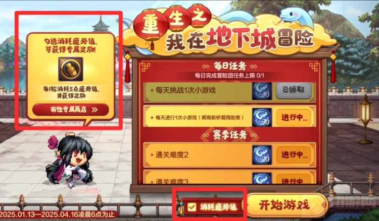 通过活动界面,点击“重生之我在地下城冒险”可以看到参与界面。