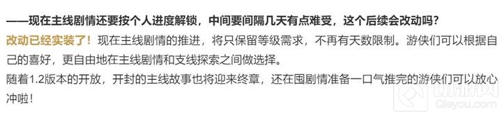 游戏团队在听取玩家反馈后,对主线剧情的解锁机制进行了调整,现在玩家可以根据自己的节奏,不受天数限制地推进主线剧情,只需满足等级要求即可。这一改动让玩家在主线剧情和支线探索之间有了更多的选择空间,尤其是在1.2版本开放后,开封的主线故事即将迎来终章,囤积剧情的玩家可以尽情体验。